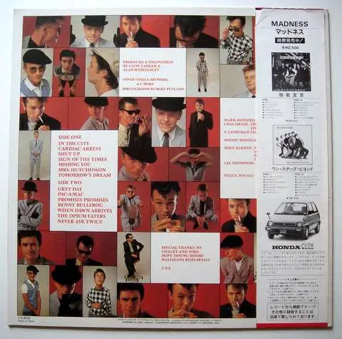 [+OBI]Label: Stiff Records, Published: 1982 ''''Housed in picture sleeve, it comes with an OBI strip and 2 inserts VIP-6808 :.1/ An insert with pictures of the Madness'''' film ''''Take it or leave it''''..2/ A fold-out insert with lyrics in English and history in Japanese. .Made in Japan.Licensed